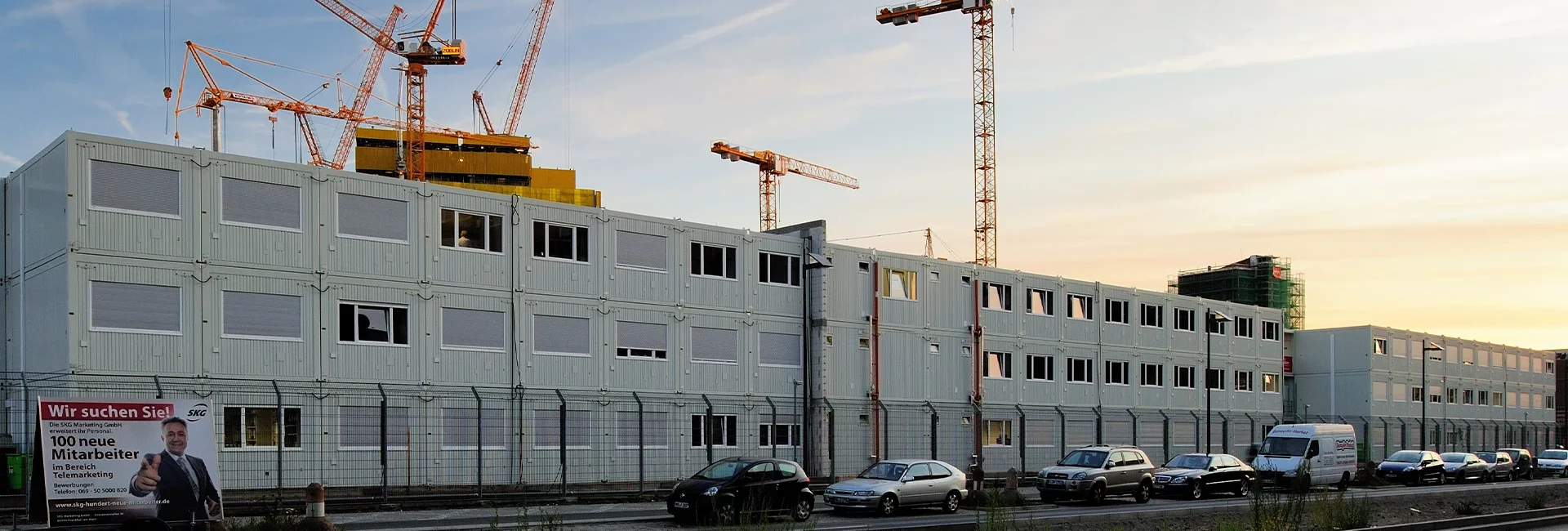 Baustellencontainer, auch Baucontainer genannt, sind temporäre Raumlösungen, die insbesondere als Container auf Baustellen verwendet werden. Die Herausforderung für Unternehmen bildet dabei insbesondere die Baustellenlogistik. Denn neben den klassischen Lagercontainern für Materialien und Geräte benötigen auch die Menschen vor Ort bestimmte Räumlichkeiten, die sehr vielfältig sein können. Ob Tagesunterkünfte, Schlafräume, Sanitärcontainer oder eine Büro- bzw. Großraumcontainerkombination: Die Anforderungen sind stets vielseitig und individuell. ProContain als Baucontainer Hersteller produziert seit inzwischen über 50 Jahren mobile Baustellencontainer, die sich durch höchste Präzision und ISO-Zertifizierung auszeichnen. Kontaktieren Sie uns für eine individuelle Beratung für ihre idealen Container für Ihre Baustelle.