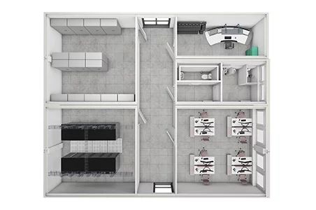 Alle Container sind kombinierbar und mehrgeschossig aufstellbar. Variable Längen, Breiten und Höhen sind lieferbar. Die Länge reicht von 6,058 bis 14,646 m, die Breite von 2,500 bis 3,400 m und die lichte Raumhöhe von 2,500 bis 2,750 m. Wir bieten Lösungen für individuelle Bodenlasten und Feuerwiderstandsklassen an. Die auswechselbaren Wandsysteme ermöglichen einen hohen Grad an Flexibilität.Wir legen großen Wert auf eine hochwertige Qualität unserer Produkte, die wir im sächsischen Coswig und im nordrhein-westfälischen Morsbach unter strengsten Qualitätsrichtlinien fertigen. Dabei kommen ausschließlich emissionsarme, gütegeprüfte Baustoffe zum Einsatz.