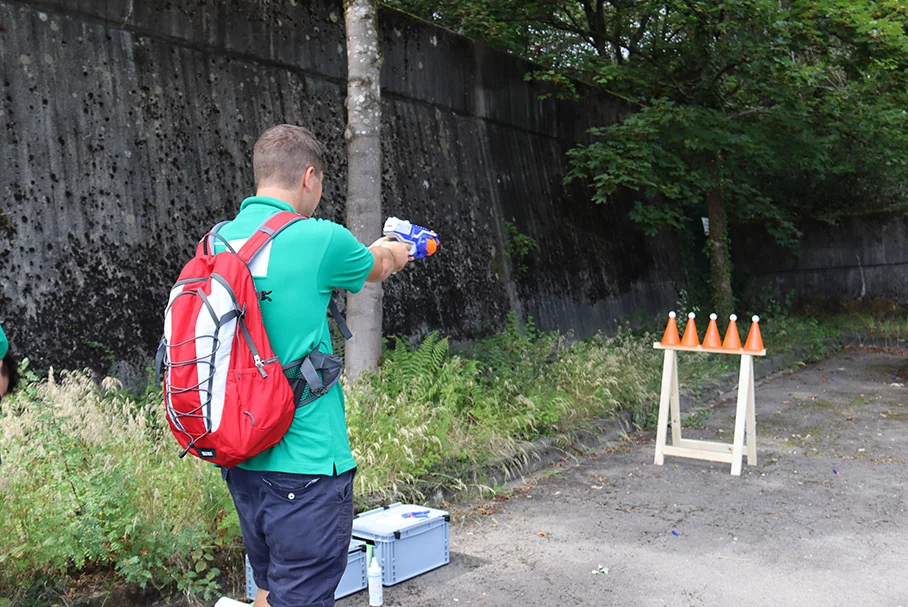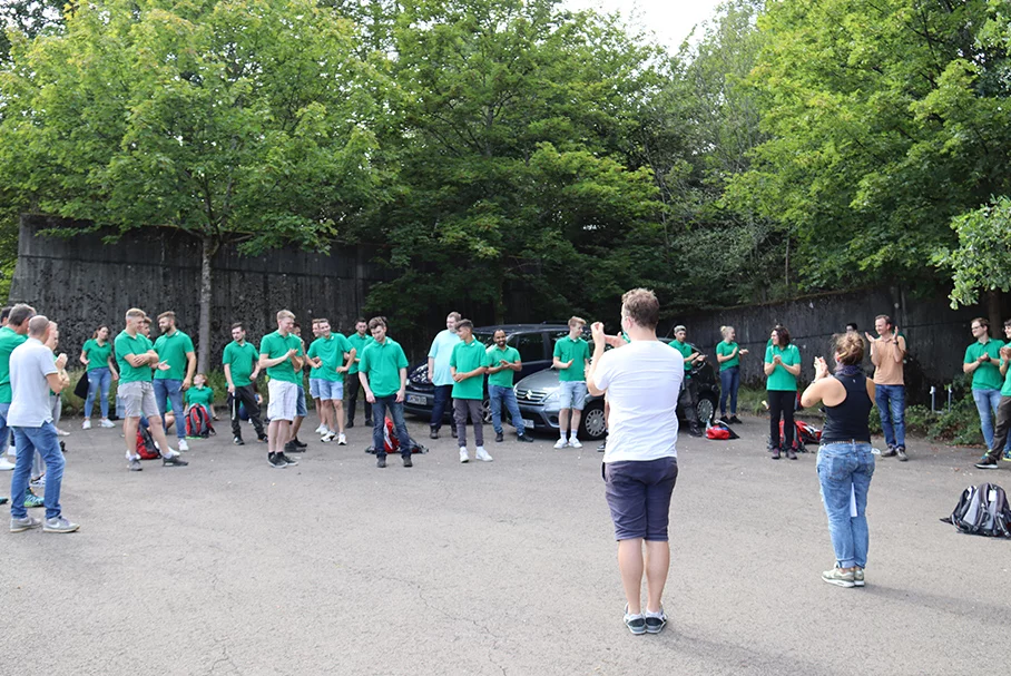 Nun ging es mit dem Bus nach Gummersbach zum Geocaching, wo die Azubis und ihre Ausbilder in Teams eingeteilt und mit Equipment sowie Proviant ausgestattet wurden. Ab jetzt ging die Suche los, denn es mussten bestimmte Punkte gefunden und herausfordernde Spiele absolviert werden. Die Teams konnten dabei Punkte sammeln, sodass es am Ende eine Siegergruppe zu ehren galt.