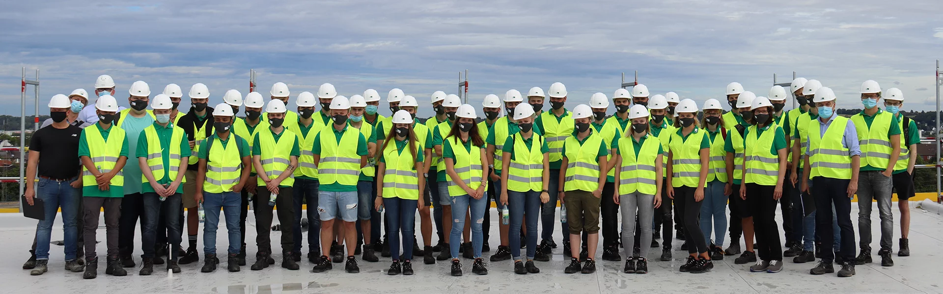 Über die Baustelle führten die Azubis in kleinen Gruppen zum einen Björn Schleifenbaum, Projektleiter bei ALHO, und zum anderen die beiden Bauleiter Sven Eichholz und Nikita Levinshteyn. Vielen Dank an dieser Stelle, dass sie sich die Zeit genommen und diesen großartigen Einblick geschaffen haben. Anschließend gab es ein kleines gemeinsames Frühstück, bevor es zum nächsten Programmpunkt ging.