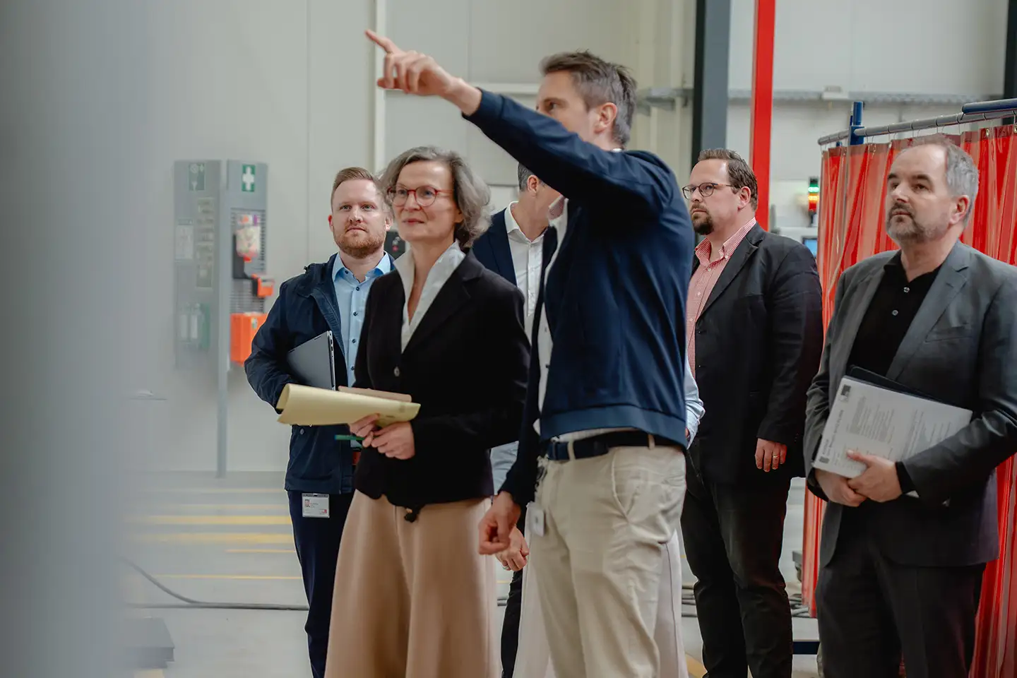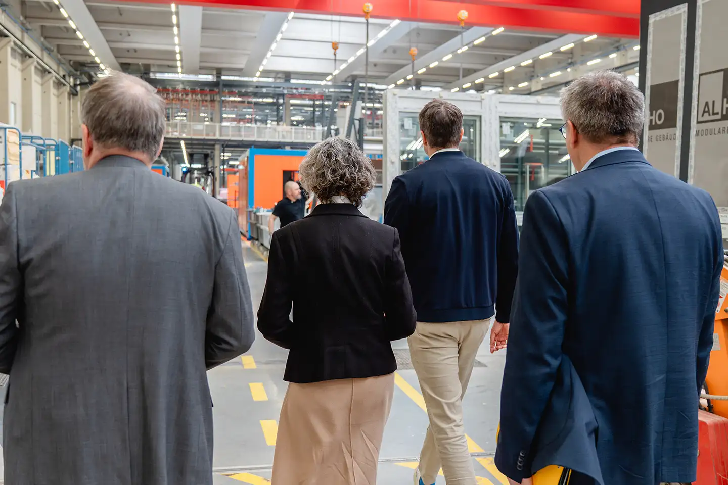 Besichtigung der neuen Produktionshalle und vertiefender Austausch über die Chancen des seriellen Bauens