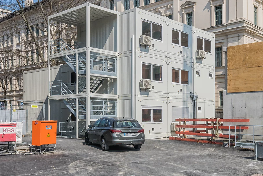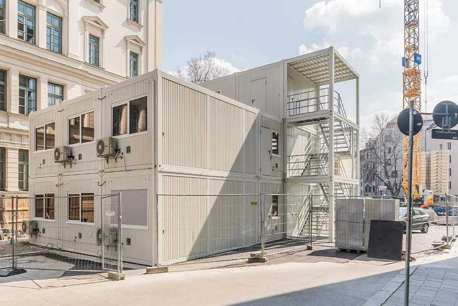 Nach Abschluss der Baumaßnahme werden die Container in den Mietpark der Josef Rädlinger Unternehmensgruppe überführt und können dank der robusten, langlebigen Konstruktion und der auswechselbaren Wandelemente noch auf vielen weiteren Baustellen zu Einsatz kommen.