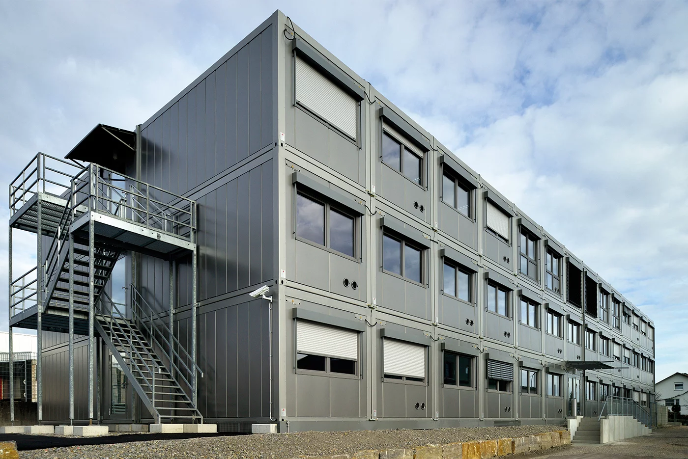 Die Adolf Würth GmbH & Co. KG ist Spezialist im Handel mit Montage- und Befestigungsmaterial. Allein in Deutschland beschäftigt das Unternehmen knapp 7.000 Mitarbeiter, rund 2.500 davon in der Firmenzentrale am Standort Künzelsau in Franken. Da diese momentan sukzessive saniert wird, werden temporäre Büroflächen für die Unterbringung der betroffenen Abteilungen benötigt. Hierfür erhielt das Unternehmen eine dreigeschossige Bürocontaineranlage, die dem markanten „Würth-Design“ entspricht und sich zudem gut in das Firmengelände einfügt.
