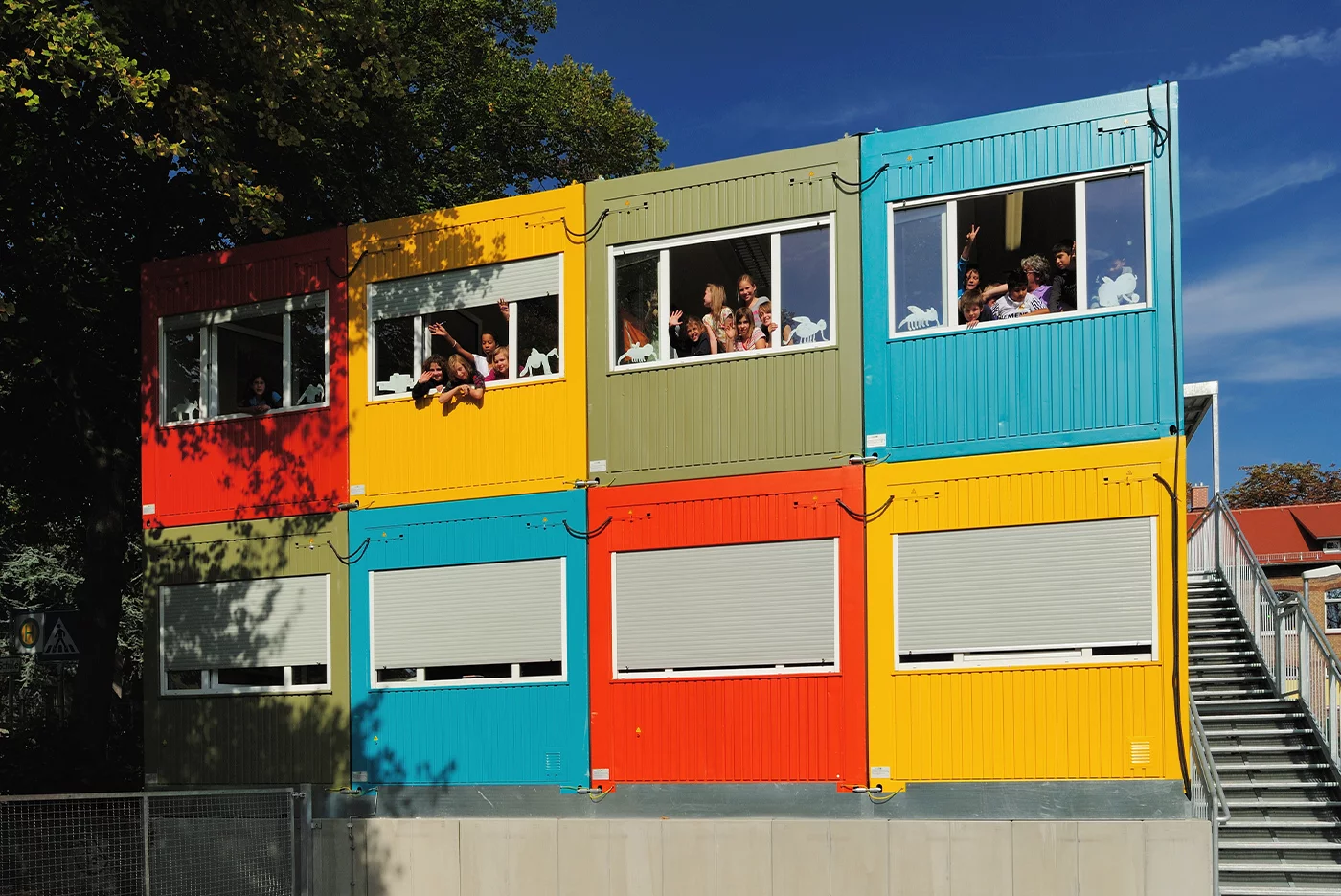 Farbenfrohe Schulcontainer ProBasic für Frankfurter Schule
