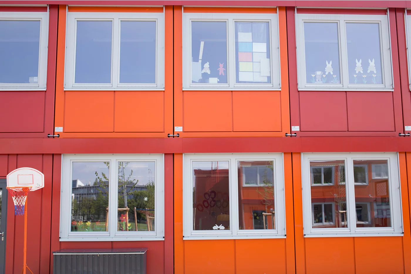 ProEnergy Container für Grundschule in München im ansprechenden Design und hoher Ausstattungsqualität.