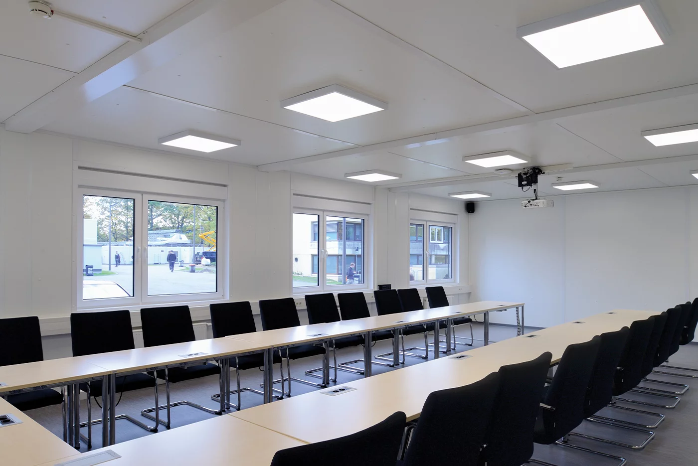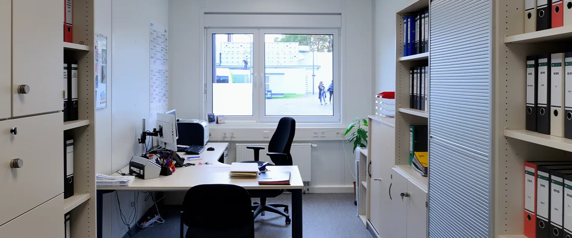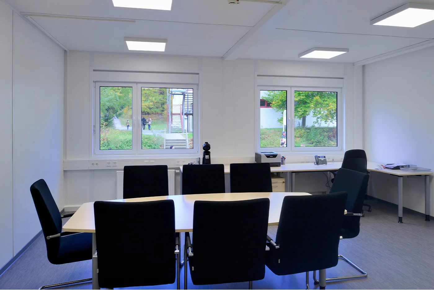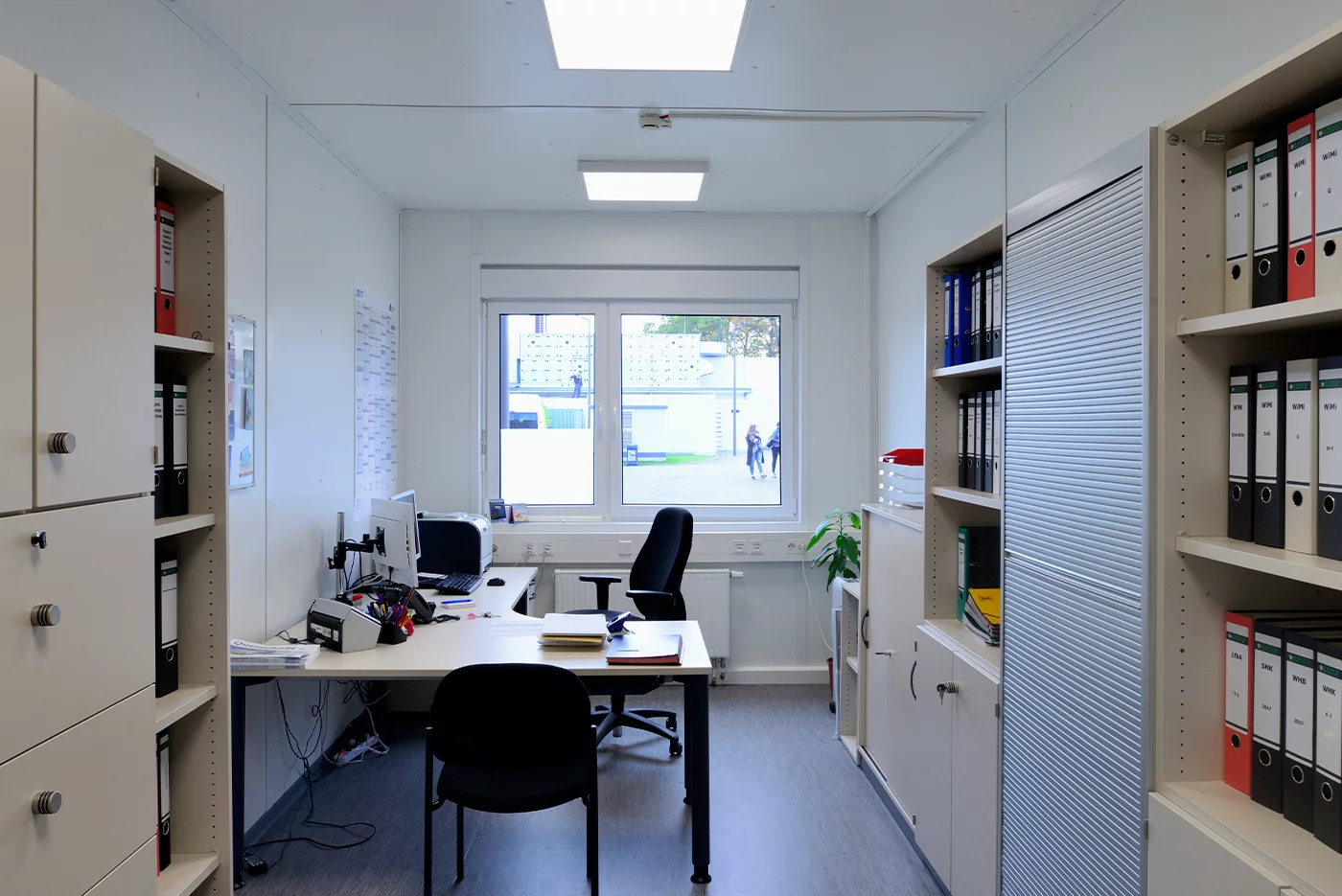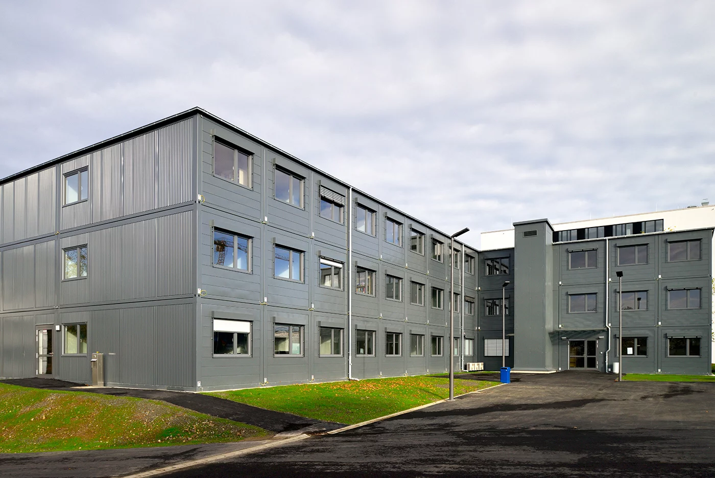 Die BLB NRW in Dortmund beauftragte die Realisierung eines 3-geschossigen Verwaltungsgebäudes am Standort der Uni Siegen. Eine Premiere: Für den Bau mit einer Grundfläche von 2.632 m² kamen zum ersten Mal die neuen ProLife-Container zum Einsatz. Die 153 Container wurden produziert und fanden ihren Standort am Campus Siegen. Das Verwaltungsgebäude soll mindestens zwei Jahre als Interimslösung dienen. Der Bau bietet Büros, Besprechungsräume, Küchen, sanitäre Anlagen sowie Lager- und Technikräume. Erschlossen werden diese durch einen Aufzug, zwei innenliegende Treppenhäuser und einen außenliegenden Treppenturm. Eine Glattblechfassade verleiht dem Gebäude ein modernes und hochwertiges Erscheinungsbild. Die Einhaltung der Energieeinsparungsverordnung und die lichte Rauminnenhöhe von 2,75 m gehören zu den typischen Charakteristika der ProLife-Reihe.