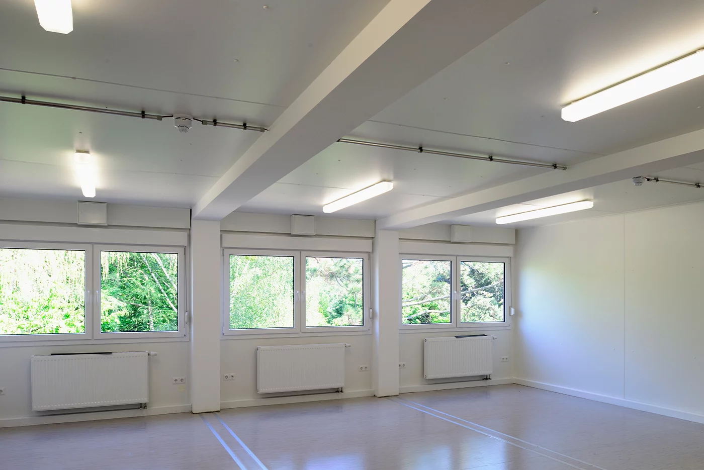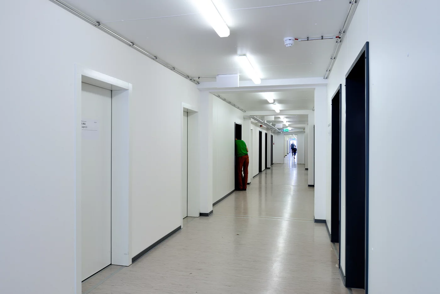 Berlin musste aufgrund der hohen Flüchtlingszahlen die Kapazitäten an Wohnunterkünften erweitern. ProContain leistete dazu einen Beitrag und fertigte pünktlich und zuverlässig ein passendes Containergebäude. „Wir konnten am 19. Mai mit den ersten Containeraufbauten starten und am 17. Juli den kompletten Komplex übergeben“, erklärt ProContain-Vertriebsleiter Daniel Keßler. „Gerade bei solchen Wohnunterkünften ist eine fristgerechte Fertigstellung wesentlich, schließlich wollen zum Termin dort Menschen einziehen, die anderswo keine Bleibe haben.“ Ganz einfach war das Projekt nicht: In der Planungsphase entpuppte sich das zunächst gewünschte Gelände als zu klein, ein neues Grundstück in Zehlendorf wurde daraufhin gewählt. Dort musste zuerst der belastete Boden ausgetauscht und das hügelige Gelände angepasst werden. „Diese kurzfristige Änderung hat natürlich auch für uns Umplanungen nach sich gezogen“, sagt Keßler. ProContain unterstützte den Bauherrn beim Bauantrag, half bei den Vorplanungen und lieferte die technischen Anforderungen an das Fundament. Entstanden ist schließlich eine Containeranlage der Baureihe ProPlus, die ein neues Zuhause für rund 340 Menschen bietet. Die mehrfarbige Fassade gibt dem Gebäude eine freundliche Optik. Die Unterkunftslösung wird auch besonderen Bedürfnissen gerecht: Der insgesamt dreigeschossige Bau ist im Erdgeschoss barrierefrei und rollstuhlgerecht eingerichtet, dazu zählen auch behindertengerechte Sanitärbereiche.