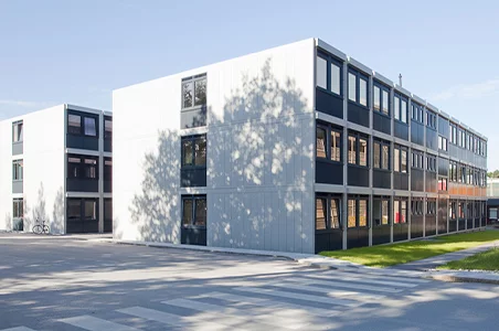 À partir de la fin des années 1980 et du début des années 1990, le groupe élargit son savoir-faire à des bâtiments modulaires conçus pour un usage durable. La construction modulaire ne se limite plus à des unités standardisées destinées au chantier : elle devient une véritable méthode constructive pour réaliser des bâtiments pérennes, performants et adaptables.