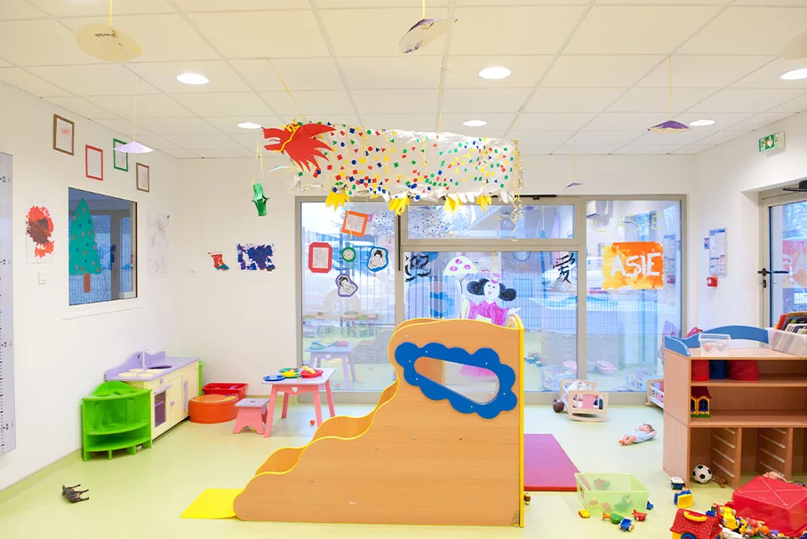 L’ensemble du projet a donc été pensé de manière à concevoir un bâtiment conforme à la règlementation de l‘ERP4 petite enfance et à la RT2012 tout en intégrant des matériaux adaptés à l’usage du bâtiment et à son exploitation. Ces aspects techniques sont venus compléter la réflexion sur l’architecture du bâtiment, la définition des espaces et des agencements afin d’offrir le meilleur cadre et le meilleur confort, en toute sécurité, aux personnels d’accueil et aux enfants.