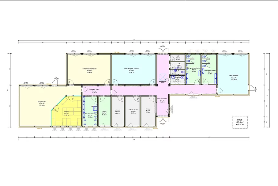 Le choix de l’emplacement est le plus souvent conditionné, dès lors qu’il doit se trouver au plus près des bâtiments scolaires voir même à l’intérieur des groupes eux-mêmes. Il convient donc, dans cet environnement, de limiter au maximum les nuisances d’un chantier. La construction hors-site apporte ce confort en réduisant la durée des travaux au strict minimum comme en limitant aussi le bruit, la poussière, les va et vient des camion.