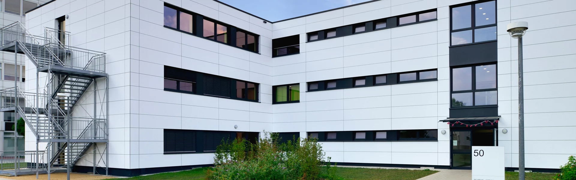 Joachim Döring, responsable des biens immobiliers, chez Siemens Mobility GmbH, explique : « Le bâtiment neuf, directement positionné à l'entrée de nos locaux, devait à la fois s'intégrer aux bâtiments existants, mais aussi être doté d'un caractère représentatif afin de soutenir l'identité de Siemens Corporate. »