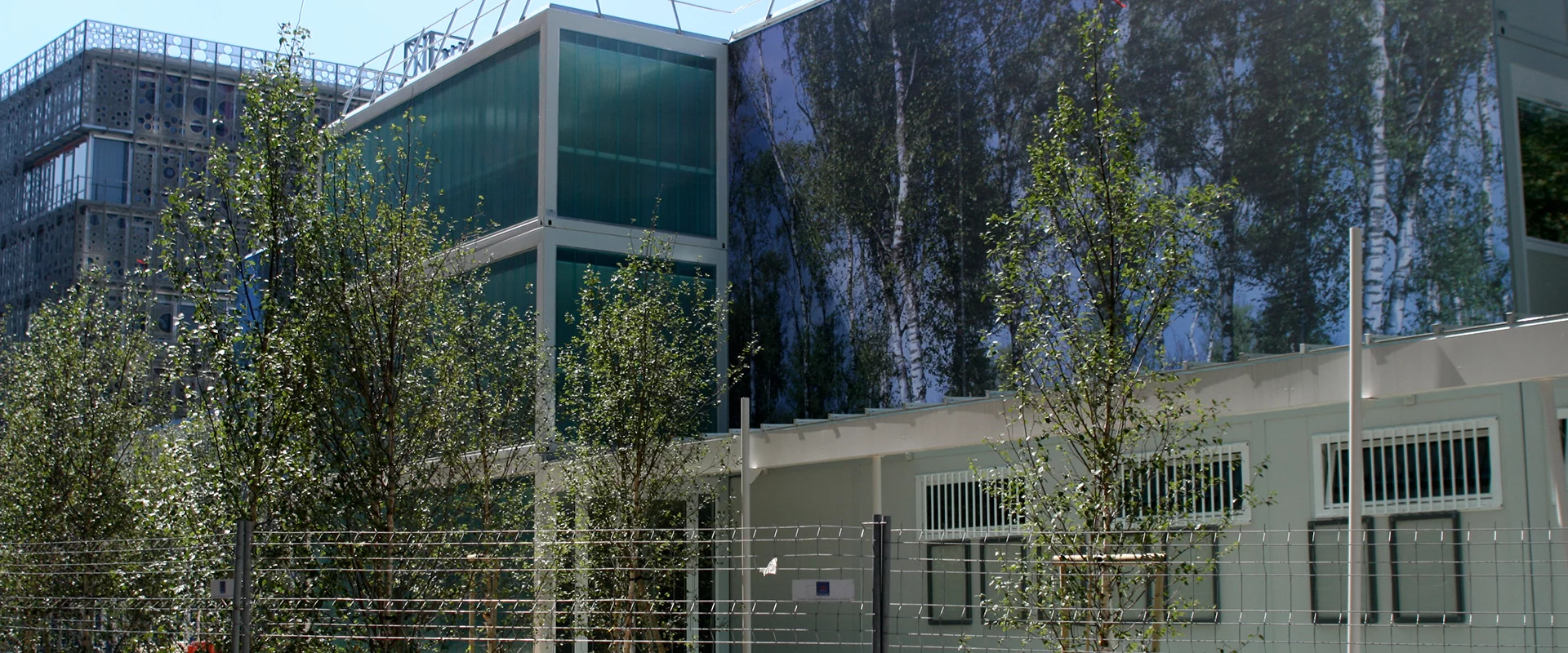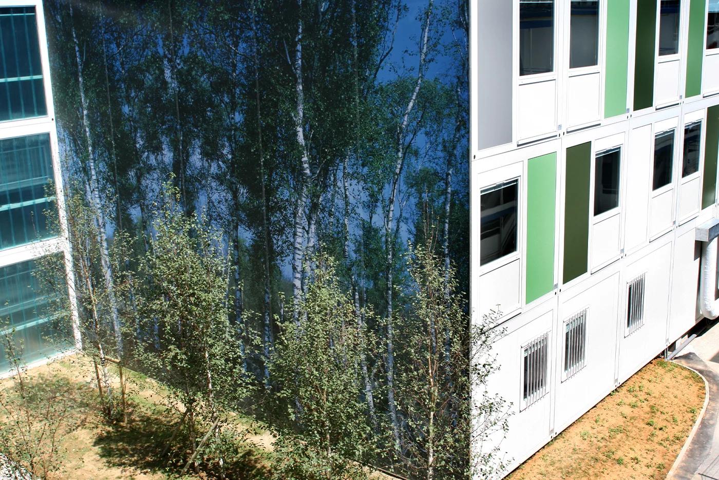 En coopération avec Archiconcept, la nouvelle bibliothèque se compose de 88 structures qui ne laissent vraiment pas indifférent ! La façade rideau en treillis sur imprimée, égaie ce bâtiment modulaire hors normes composé de :