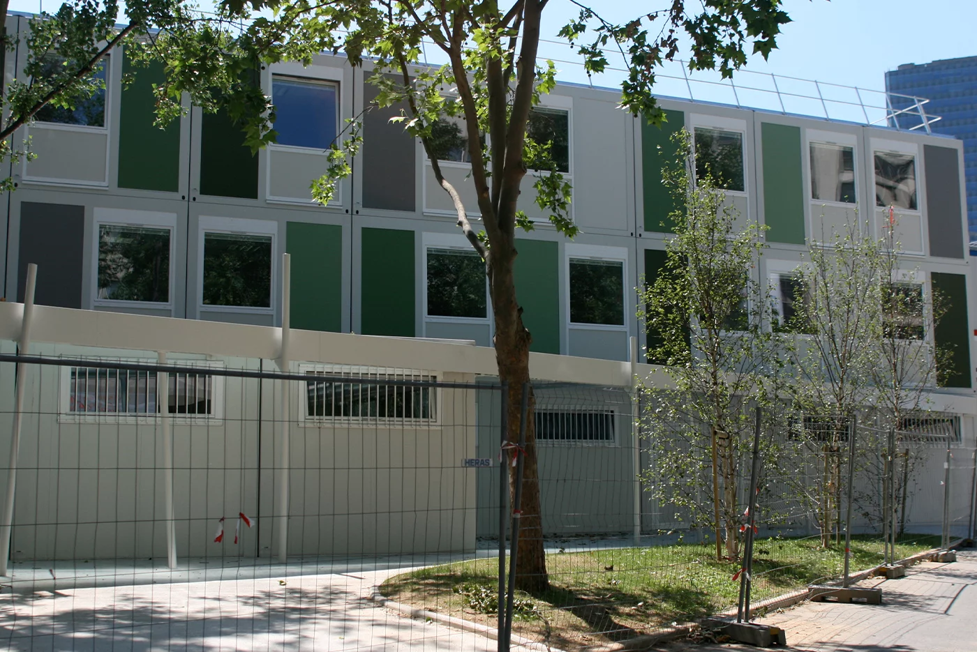 La bibliothèque provisoire de l’université Pierre et Marie Curie est tout à fait atypique. Afin de garantir la stabilité, Procontain a conçu des fondations spécifiques à l’aide de piliers enfoncés à 25m de profondeur dans le sol. Le montage du bâtiment modulaire de 3 niveaux s’est fait de nuit dans l’optique de limiter la gêne occasionnée sur la circulation Parisienne.