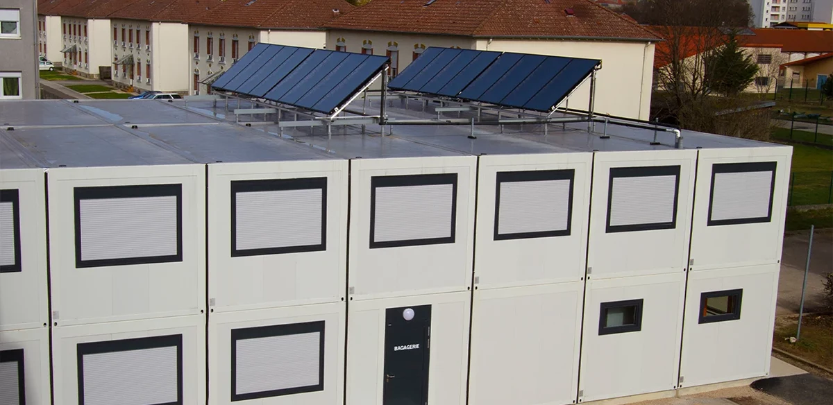 A la demande d’une entité du Ministère de la Défense, Procontain a construit un bâtiment modulaire sur deux niveaux destiné au logement de personnels. Sur 1152 m² les 48 structures permettent d’accueillir près de 100 personnes réparties dans 39 chambres de confort optimal. Les points forts de ce bâtiment modulaire sont :