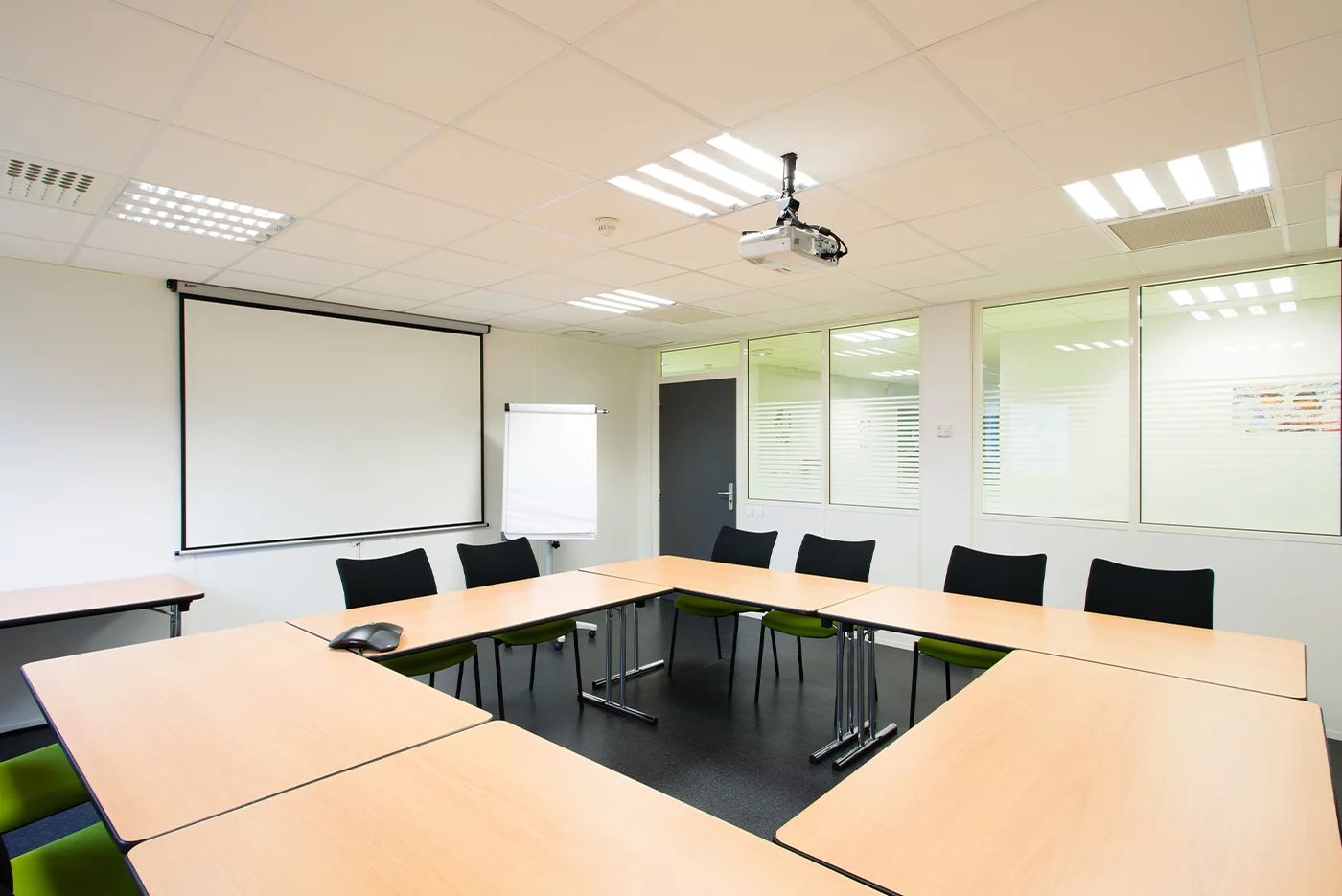 Le nouveau bâtiment permet d’accueillir les stagiaires dans les meilleures conditions de confort et de travail. En fonction des besoins, les 3 salles de formation séparées par des cloisons mobiles acoustiques peuvent être facilement transformées en une seule grande salle.
